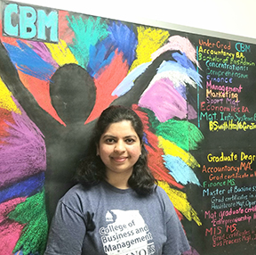 I am working as a Graduate Assistant for the BBA and MBA departments and it has been a great journey since 2019. After getting a degree from a non-business background, I was nervous when I joined as an MBA student. However, the staff and faculty of the College of Business and Management warmly welcomed me. I had a wonderful opportunity to work under professors in reviewing business journals and helping them out with their research. This has led me to find my area of interest and learn various industry standard software like SOS, Tableau and R-language. It not only helped me professionally, but also made me excel in my academics.