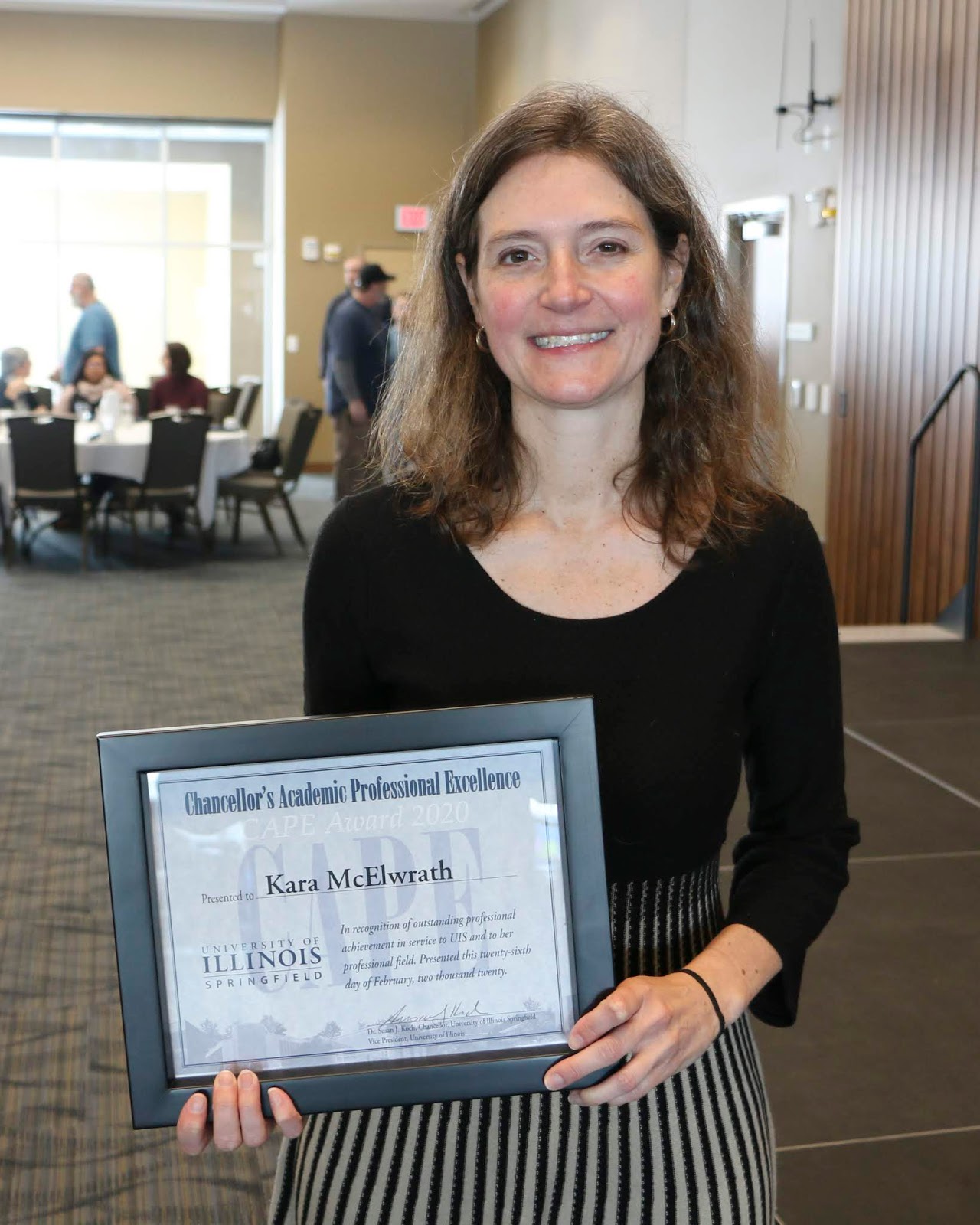 The Chancellor’s Academic Professional Excellence (CAPE) award was presented to Kara McElwrath, assistant director of client services for Information Technology Services (ITS).